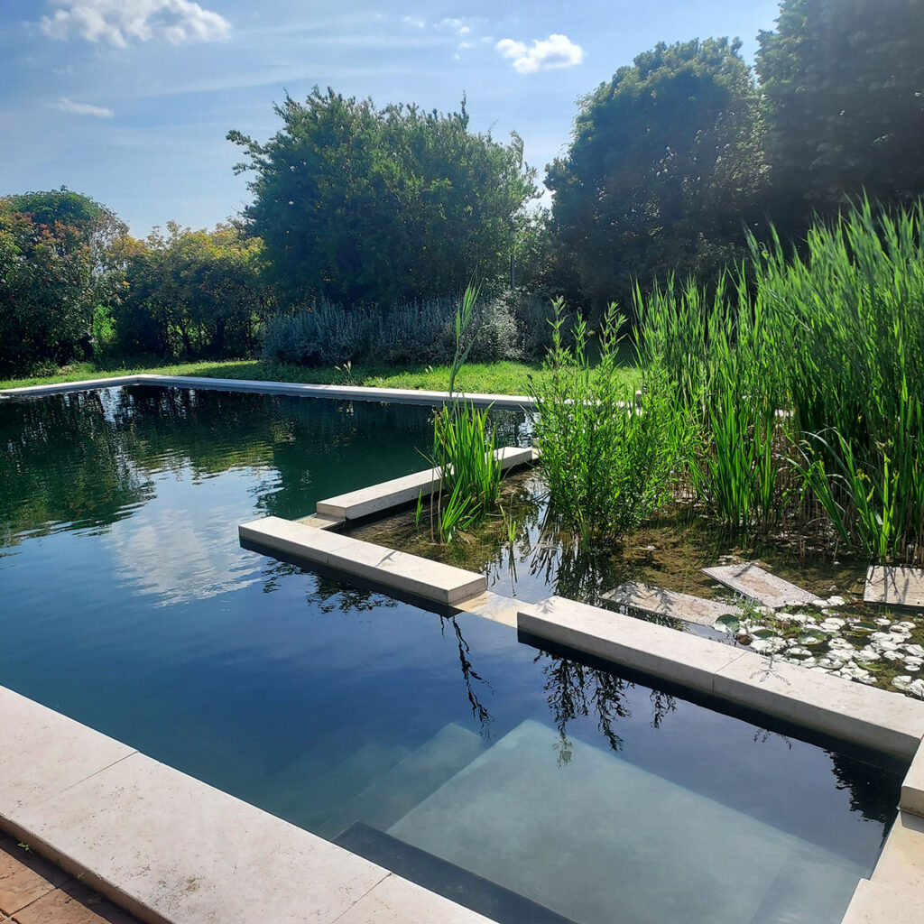 A noi piace inserire le biopiscine all’interno di una progettazione integrata ed ecologica della gestione delle acque: ad esempio creando bacini di raccolta dell’acqua piovana da usare per riempire la piscina, oppure utilizzare corsi d’acqua o ristagni già presenti in loco.