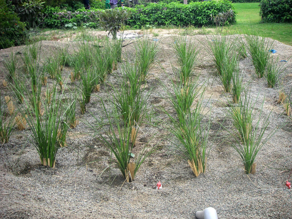 Questa “vasca” verrà irrigata con il refluo da depurare: le acque di irrigazione, percorrendola, saranno soggette all’azione depurativa congiunta di radici e batteri e verranno convogliate a valle del sistema.